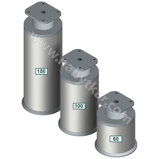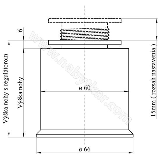 Nábytková noha VALEC - Priemer 60 mm - Prevedenie hliník - plast - Rektifikácia pre eliminovanie nerovnosti podlahy - Uchytenie 4x drevoskrutka, alebo 1x skrutka M10 (nieje obsahom balenia)