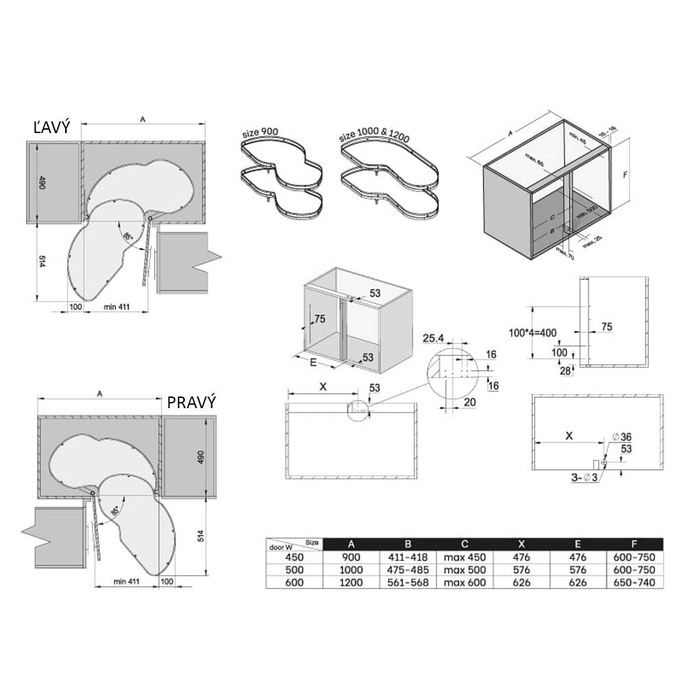 • Minimálna šírka otvoru: 475 mm