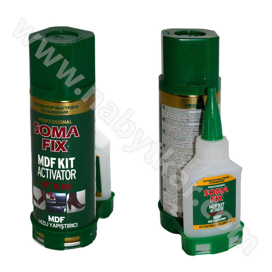 SOMAFIX MDF KIT Activator je kvalitné dvojzložkové lepidlo, ktoré sa skladá z druhého adhesíva s vysokou viskozitou a aktivátora (urýchluje proces lepenia) . Schne v krátkej dobe na každom povrchu a oblasti fixácie. Je určený na lepenie rôznych povrchov: MDF, drevotrieska, sklo, plast, hliník, koža, kov. Spoj zlepí do niekoľkých sekúnd.