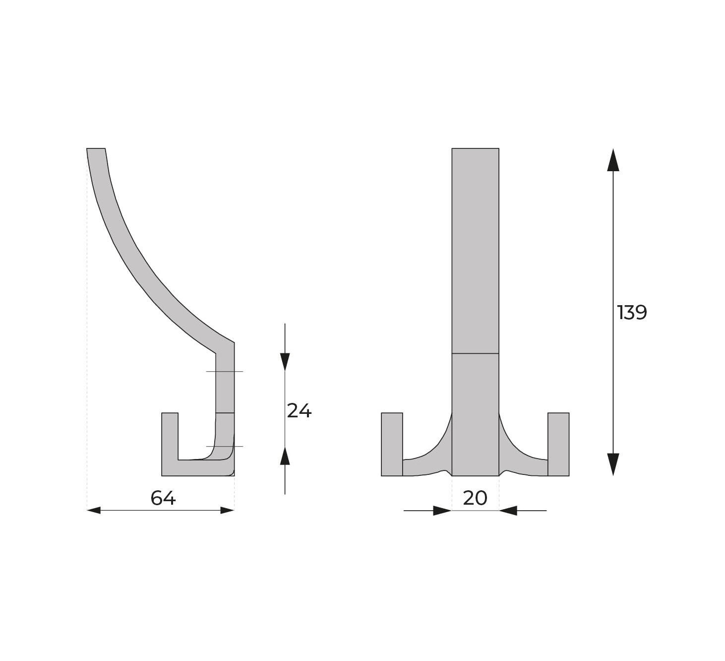 Vešiak veľký trojitý CH061-... inox, chróm, mat. chróm