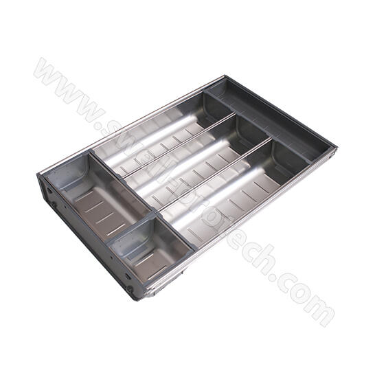 -Misky a pozdĺžne deliace prvky z vysokoušľachtilej ocele s kombinované s  plastovými dielcami