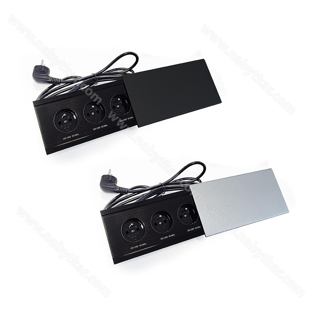 Konštrukcia prístroja zahŕňa stabilné, pevnépuzdro osadené v doske stola a pohyblivý posuvný kryt s 3 napájacímizásuvkami s uzemnením 230V. Zariadenie je možné inštalovať do pracovnýchdosiek s minimálnou výškou (hrúbkou) 25 mm. Kryt je vyrobený z hliníka(strieborná) alebo čiernej (čierna).